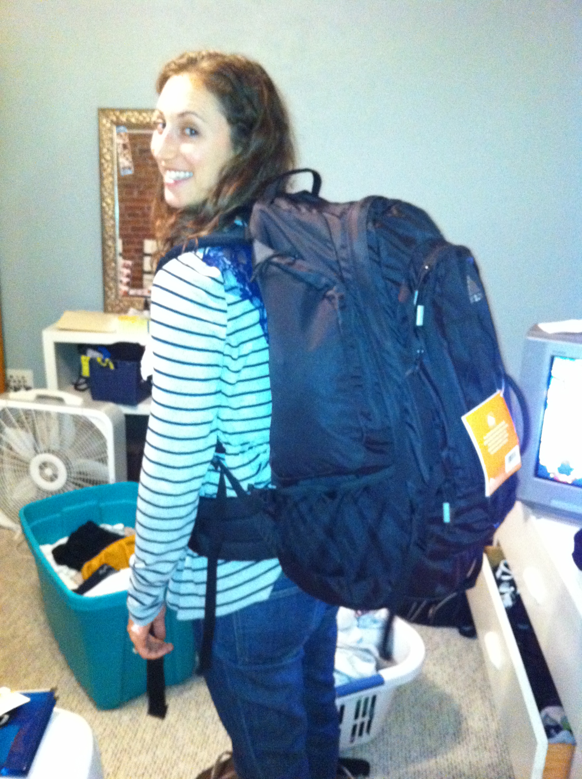 Misc: rain coat, nano puff hoodie, toiletries, sleep sack, pillow case, kindle, net book, cameras, poncho, laundry bag, baggallini triple zip, spork, bag lock, chargers, umbrella, ear band.