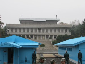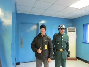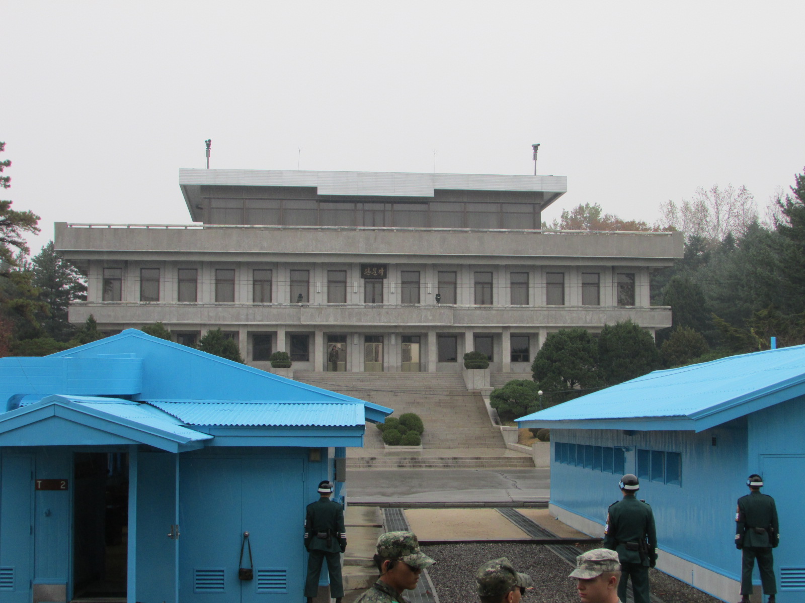 Adena opted out of the Korean DMZ (Demilitarized Zone) tour, but I couldn’t resist the potential of a Communist spotting. There are a variety of tours offered; however, I chose one that visited the Joint Security Area (JSA) in Panmunjum where the two countries have met nearly 1,000 times over the last 60 years. Heading north out of Seoul, it didn’t take long before we were surrounded by a rural, farming area. As we moved through the various checkpoint and escorts, we were instructed on what we could and could not photograph. The tone was serious. When we eventually pulled up to the JSA we were allowed 5 minutes to photograph the JSA and the North Korean side. We were able to enter the buildings that straddle the border and where government meetings take place. More importantly, we were able to step over to the North Korean side (separated by a small concrete slab). It’s a surreal area, with constant surveillance by both sides. It’s amazing to think that this was once a single country and more recently that the troops were mixed within the JSA. Alas, the good old days are over and relations are quite poor.