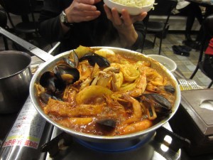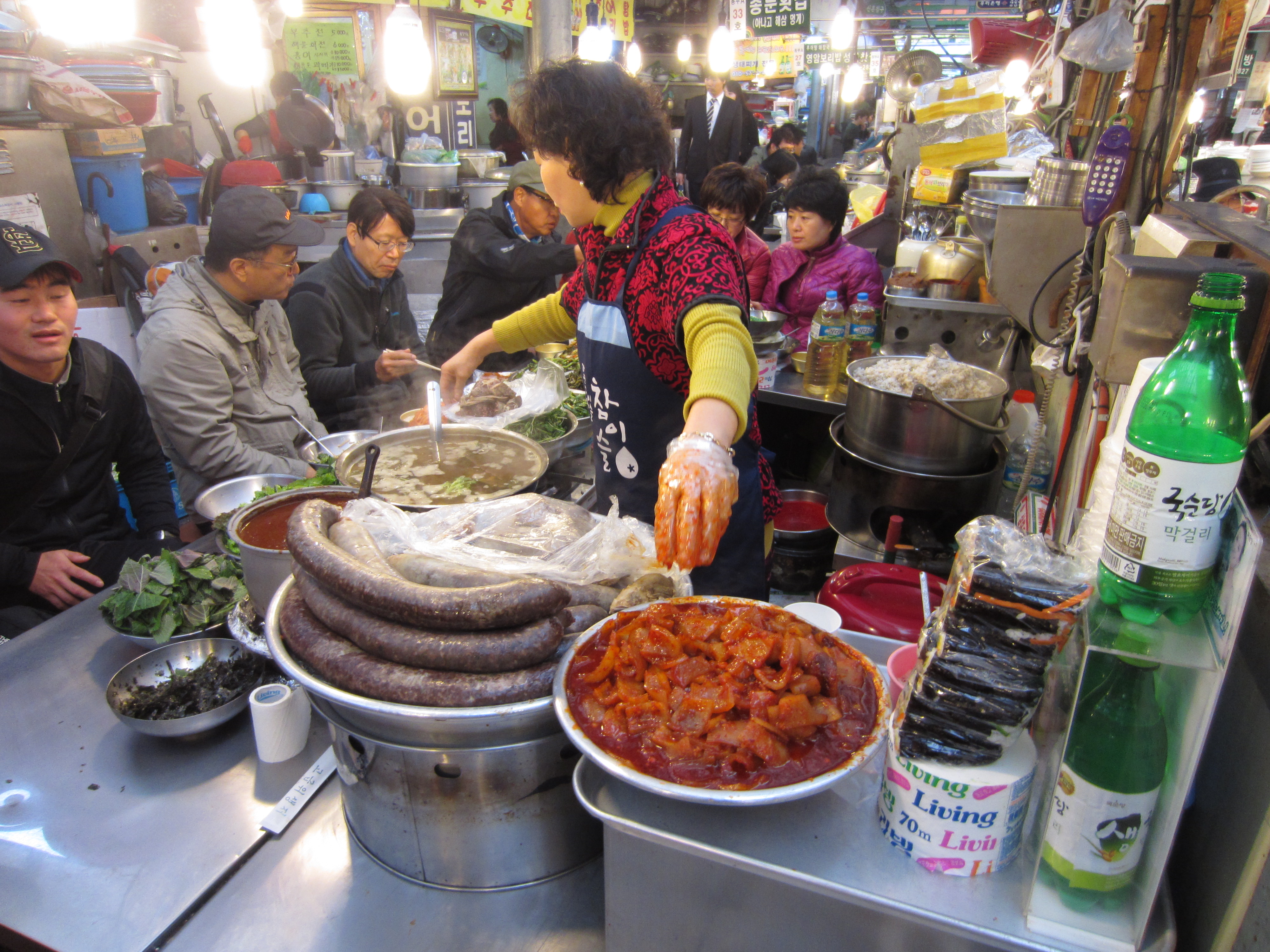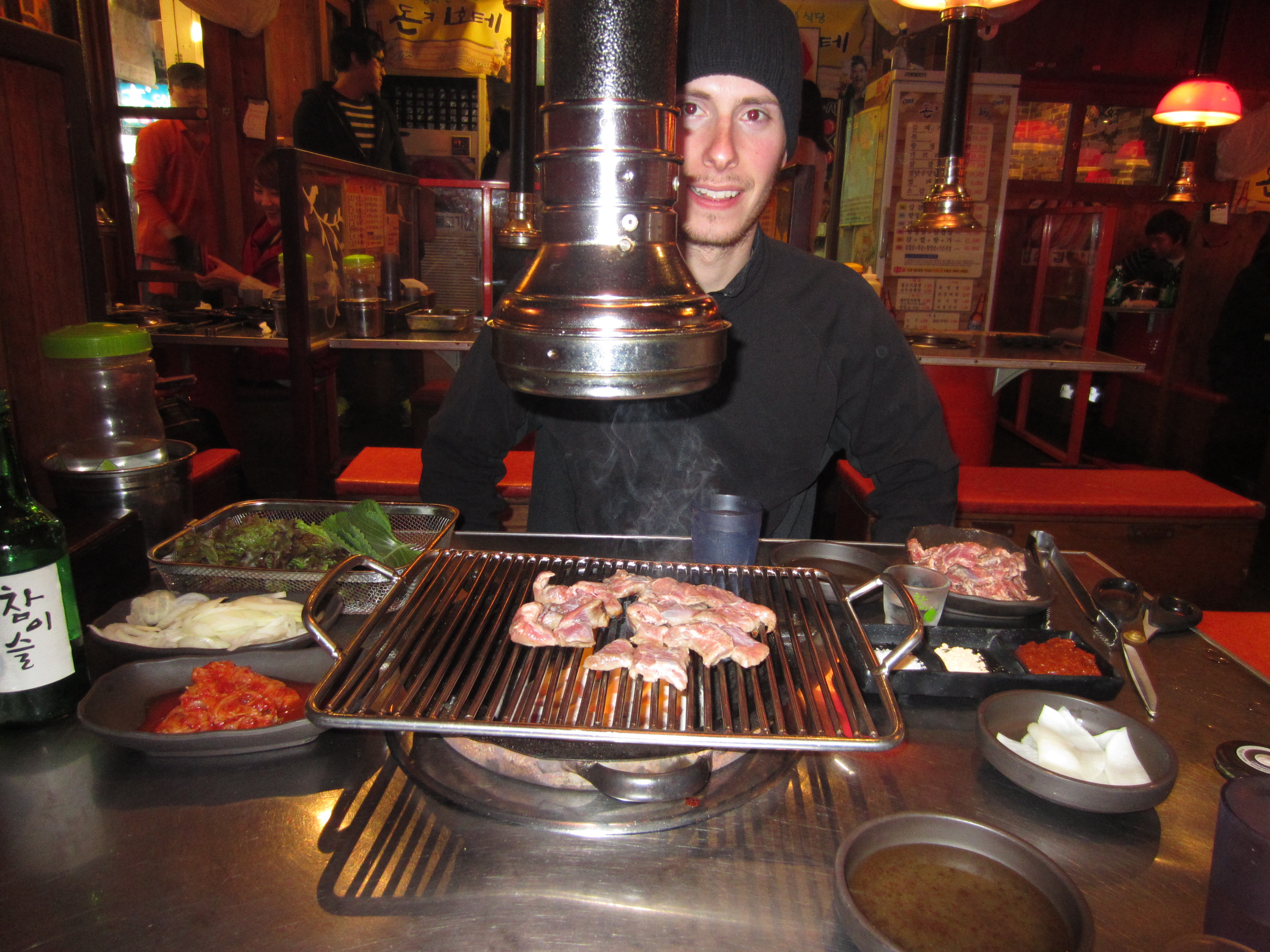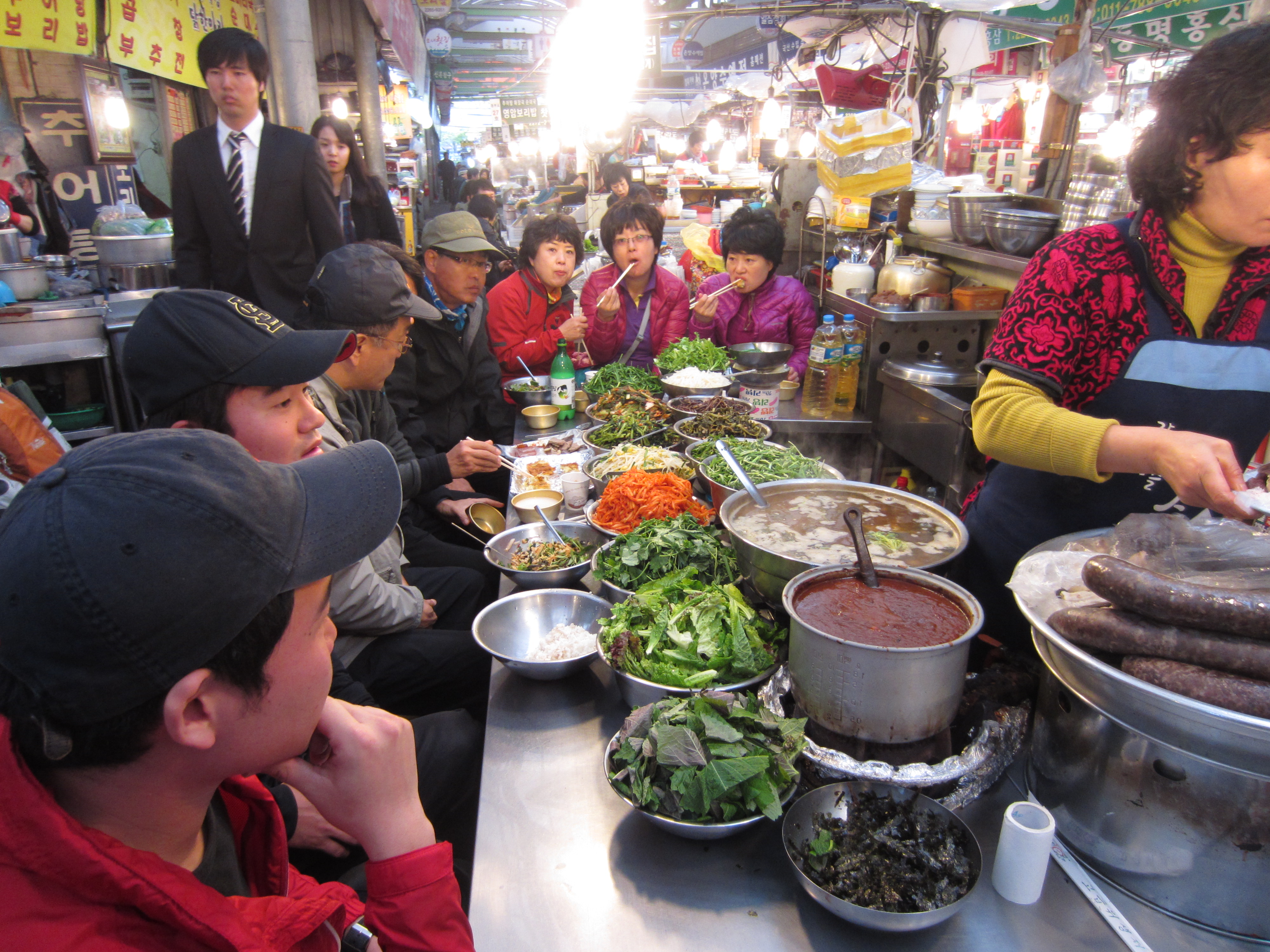 We touched down in Seoul and were immediately impressed by the Incheon Airport. This incredibly contemporary airport seems to double as an entertainment facility with a full-fledged ice rink. We hopped on the train to downtown Seoul and were met by a friend of a friend who took us out to traditional Korean dinner; including seafood and leak pancake, soybean paste soup and fried mackerel plus a dozen or so sides. It was simply delicious. On that note, we’ve had some incredible meals in Seoul. From Korean BBQ, to Bibimbap, Samgyetang (Ginseng Chicken Soup), Haemultang (Seafood Stew), among others. Since Japan had been our only other Asian experience, it’s natural that we will compare the two cultures. Needless to say, the South Korean cuisine appears fare more diversified, healthier and all around tastier.