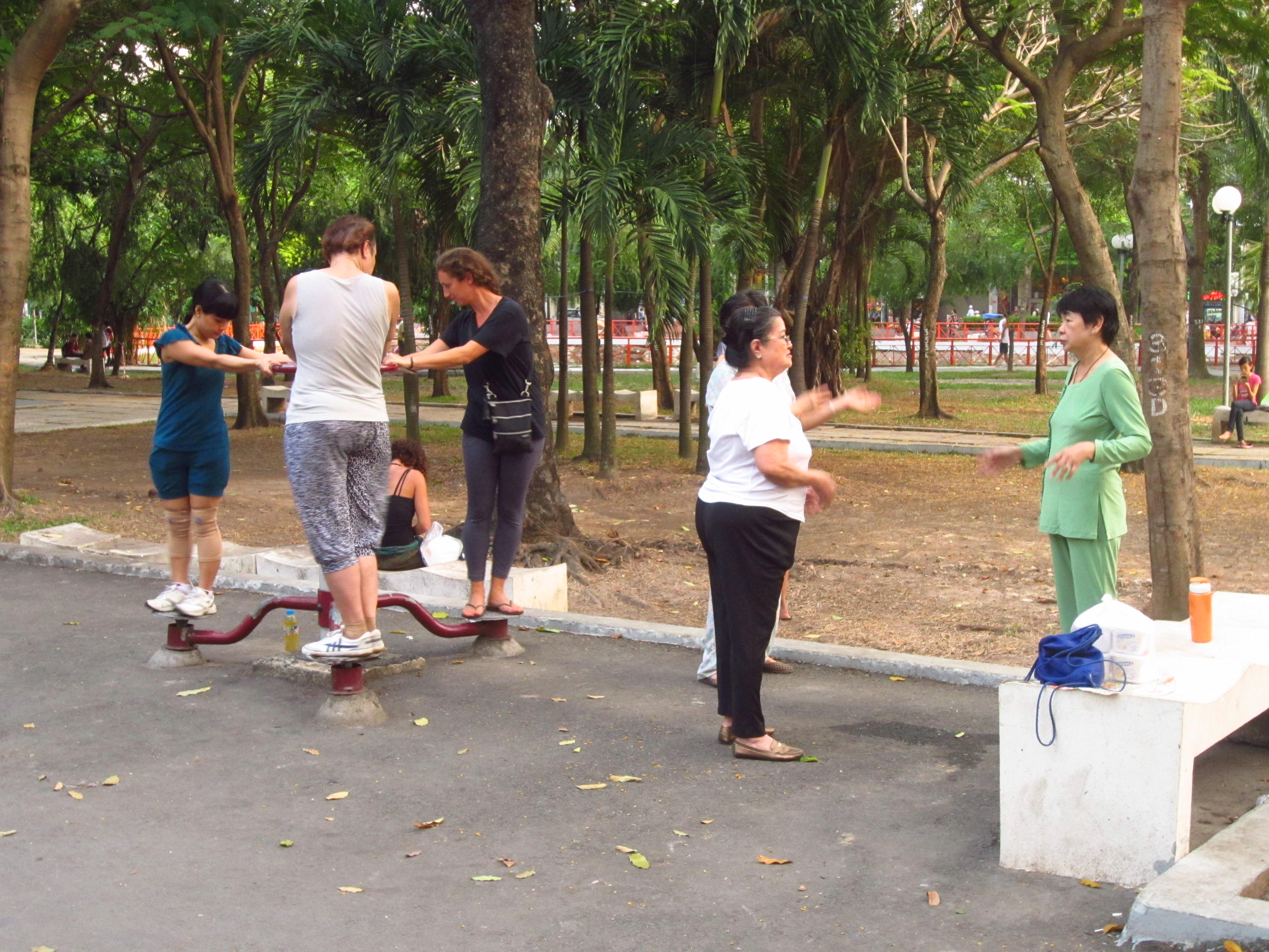Ho Chi Minh City, formerly and in many ways still known as Saigon, is the largest city in southern Vietnam. As soon as we arrived, we were relieved to see clean and paved roads, children with shoes and pants on and no one going to the bathroom in the streets. It felt like a breath of fresh air compared to our last week or so. HCMC is made up of over a dozen “districts” or neighborhoods. Most backpackers, including ourselves, stayed in district 1 where there are many restaurants, a touristy market, War Remembrance Museum, Independence Plaza, a few malls, many parks and a main backpacker street pack full of various lodging options. We spent two full days here and explored a lot of district 1, as well as ventured out into District 3 and District 10. A few great things about the city: 1) There are many open parks with sidewalk tracks, badminton courts, and urban exercise equipment with city folk actually putting it to good use. There is nothing quite like seeing a Vietnamese woman in full pajama wear (standard outfit) working the elliptical in the park. Exercise has not been on the radar of the inhabitants of other Asian countries we’ve visited, so this was a welcome sight. 2) The markets in Saigon sell all the name brands (Banana Republic, Gap, North Face, Patagonia, Zara etc.) at very discounted prices. The factories that produce these brands are located in Vietnam and they either make fake duplicates of the products or end up selling the “mistake” items which are unacceptable to be shipped overseas. 3) The food is also very inexpensive, but unfortunately we think we have had equal if not sometimes tastier Vietnamese food on Federal in Denver. Strange. 4) The coffee culture here is very unique as about every 10 feet or so on the sidewalk there will be small children’s chairs and tables set up with a woman pouring coffee out of a thermos. These are the ubiquitous coffee stalls and there are literally thousands of them. You can get Ca Phe Da (iced coffee with sugar) or Ca Phe Sua Da (iced coffee with condensed milk and sugar), or Tra Da (iced tea). Throughout the day there are men and women who post up at these small tables and enjoy their coffee, which will surely be strong and sugary. Oh and don’t forget the infamous Weasel coffee. They poop out the beans! The price for a cup of weasel coffee is about 10 times more than a regular ca phe da.