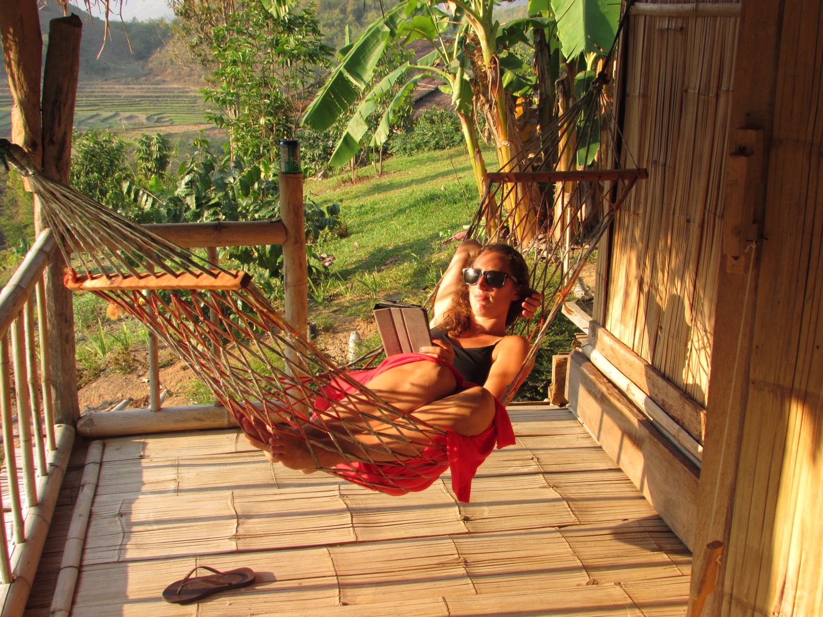 Due to the lack of touristic activities in Chiang Rai city, we decided to escape to the hills of Northern Thailand for two nights to breathe in some fresh air. The questionably rated top Bed and Breakfast on Trip Adviser is a nine bungalow retreat located about 25 kilometers (but nearly an hour by car) west of town. We were able to spend a couple of days in nature and explore the countryside on foot. We hiked through the hills and came across a beautiful waterfall, two local villages, a tea plantation and hot springs where you can actually boil eggs in the water. While the hike was at some points quite rigorous, it was very relaxing to be in nature, as well as take in the views from the hammock on the porch of our very rustic bungalow. We also met some good ol’ Americans who had spent quite a bit of time living in China and it was great to hear about their experiences abroad.