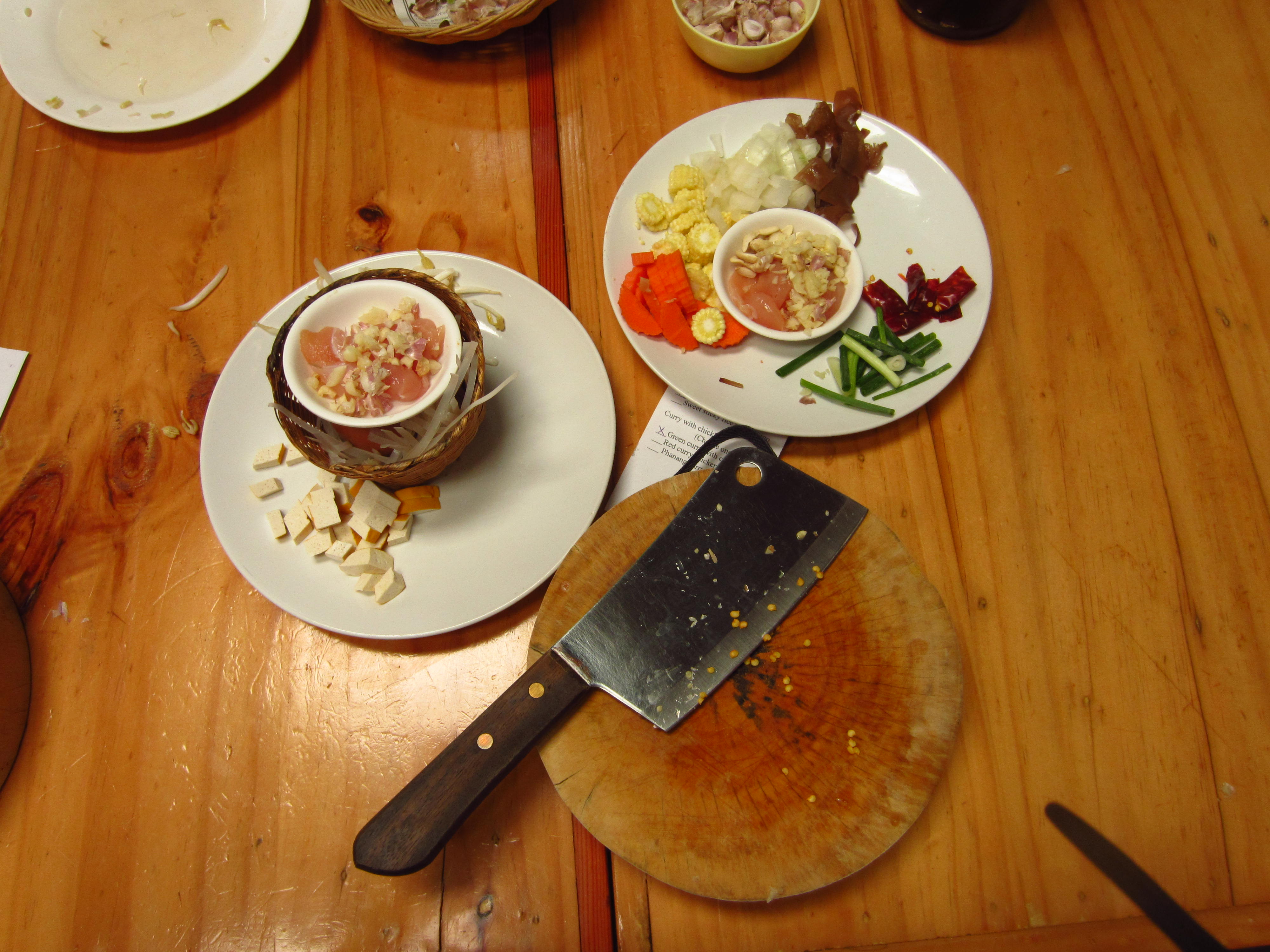 The next day we woke up bright and early and took a half day cooking class. The cooking class included a trip to the local market to learn about the ingredients that make Thai food so delicious and concluded with each of us cooking four Thai dishes. We were surprised how easy Thai cooking can be when you have all of the ingredients already measured, chopped and prepared for you! Our second surprise was the large amount of palm sugar and fish sauce that goes into each dish. More sugar and salt please? Our favorite dishes were Tom Yum and coconut and chicken soups, along with a spicy papaya salad. It was also great to cook and hang with our new Polish friends.. We spent the afternoon enjoying massages and drinking medicinal teas and sweet coffees and topped off the day with a visit to the best Khao Soy stall in town. Not a bad way to spend the day.