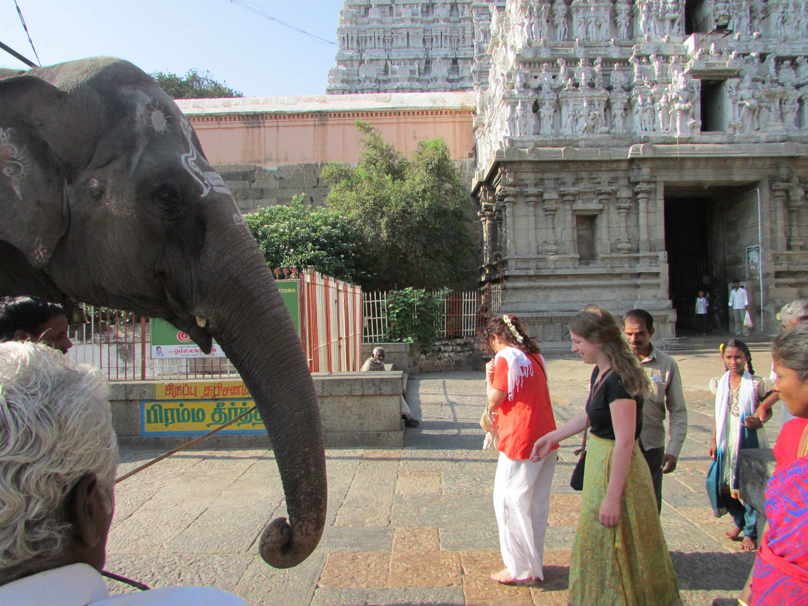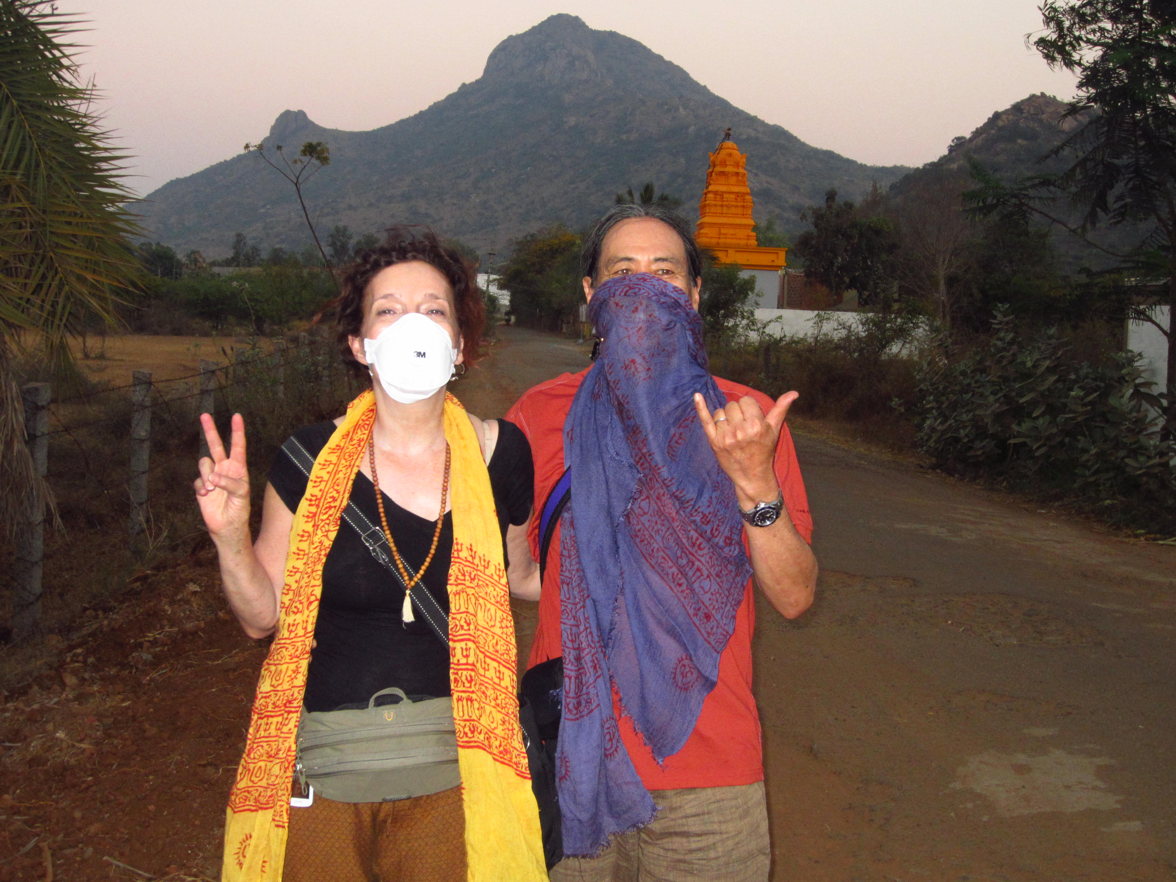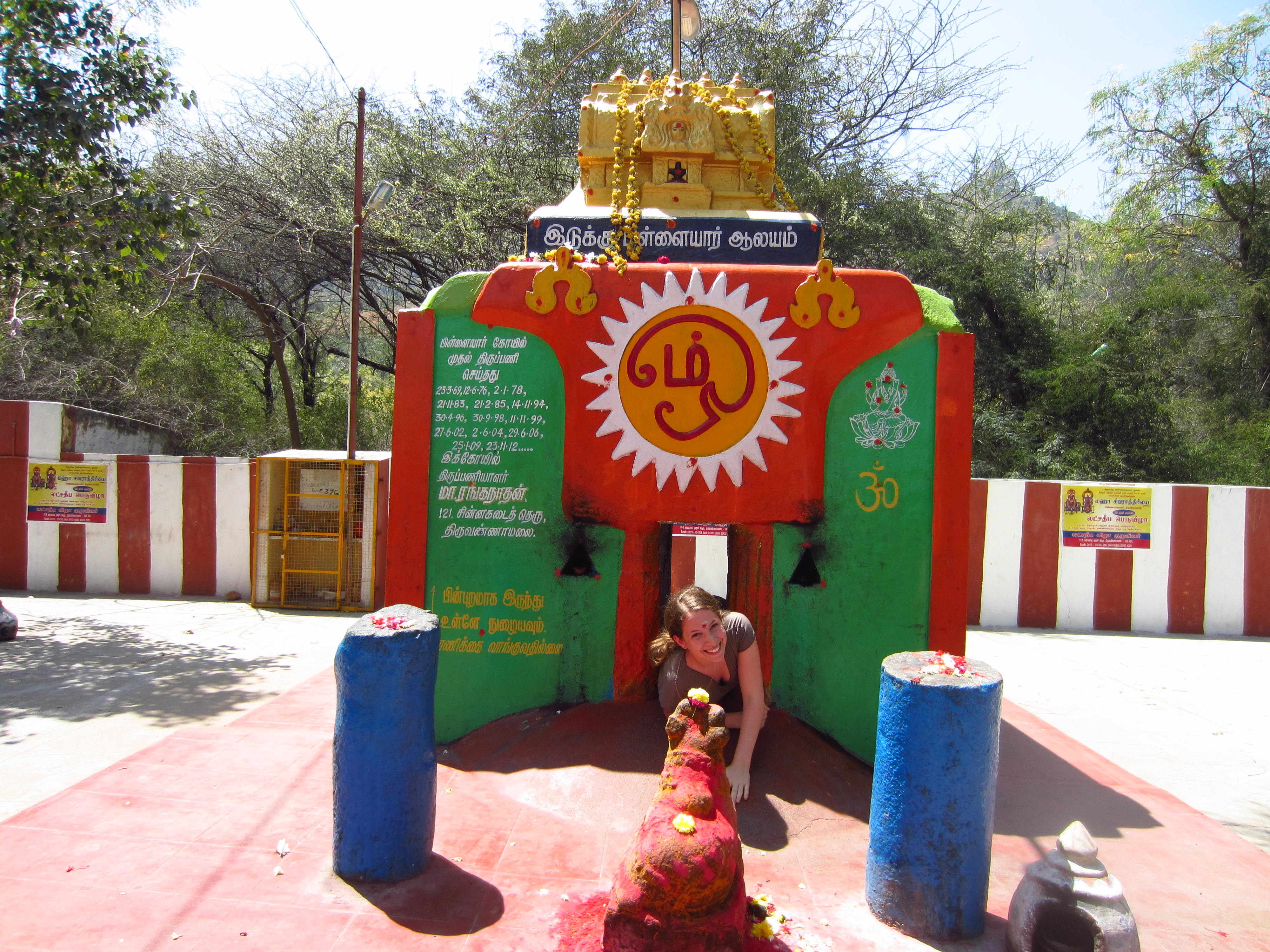 As we passed through the arrival gate, we were eagerly greeted by Andy’s mom, Antoinette and husband, Ramana and whisked away to their “villa” in Tiru, a four hour drive Southwest of Chennai. We predictably made a stop at our first chai tea stand (at 2 AM) and experienced our first authentic cup of chai … delicious. Tiru is a town that Westerners and Indians alike flock to for its spirituality. The town is home to Mt. Arunachula, a mountain named after the Hindu God Shiva that many believe has a certain energy that draws people there. The mountain is located in the center of the town, has a 10 mile circumference and the top is shaped like a head of an elephant. Dotted along the road encircling the mountain we found many shrines, where followers come to receive a daily blessing by the Pujari (priest). Tiru’s locals and guests will also participate in productshana, the act of walking around the mountain to find an answer to your intention or prayer. We of course participated in all these rituals with the education and guidance of Ramana and his friend Venkatesen. Without them, we would be completely lost when we met with the Pujaris and completed productshana. Many thanks!