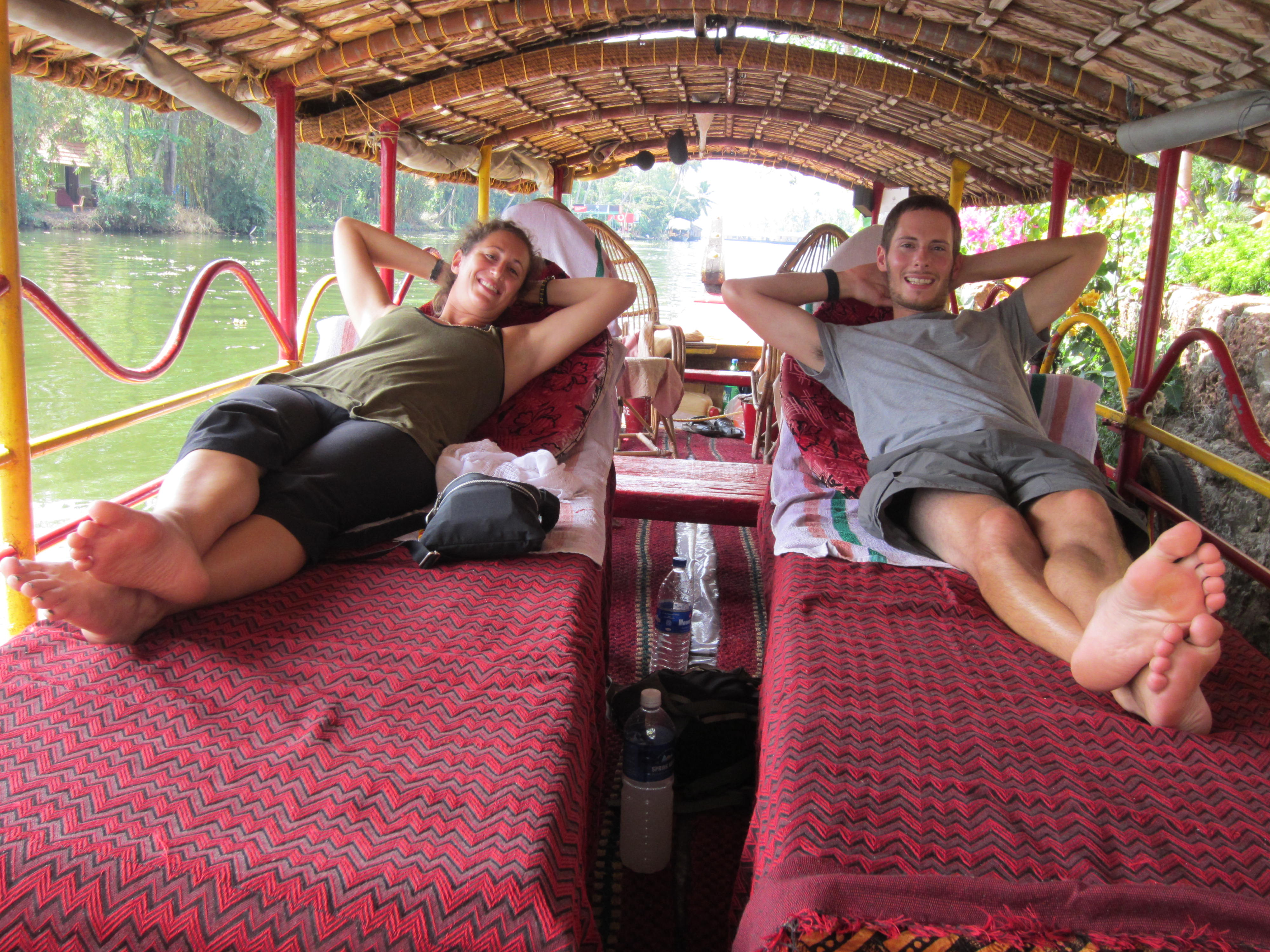 After a week or so of living comfortably in Tiru, we hopped on a plane and traveled even further south to sweltering heat of Kerela, a region touted by the Christian majority as “Gods Own Country” … whatever that means. You may be saying to yourself, “Christians in India?” Well … the Portuguese developed this part of Indian in the 1500’s, which was later occupied by both the Dutch and British. During that time, they rather successfully implemented Christianity to the region. Throughout Kerela, you’ll find numerous beautiful, white-washed churches and many examples of classic European architecture located along quaint alleyways. Our first stop was Fort Cochin, where on top of some impressive churches we found a rather bland Dutch palace and area known as Jewtown (no joke) and walked through the oldest functioning synagogue in India. Fort Cochin was pleasant since we were able to freely walk the litter-free streets without harassment from touts or rickshaw drivers, a true rarity in India. We also headed further South and spent a few days in Alleppey, an area known for its backwaters (tributaries to the Arabian Sea). Many tourists will rent a house boat for a day or two and cruise the backwaters, hoping to catch a glimpse of life on the water. We opted for a small guesthouse on the water, with a few day trips around the backwaters. It was truly incredible to watch the locals live their daily lives, a stark contrast to our relatively cushy lifestyle back home. We were able to cruise down narrow canals and see families bathing and brushing their teeth in the same river water that was full of litter and gasoline from the house boats, washing laundry on a large rock near their house, fishing with nothing more than a stick and string and kids heading off to school by small boat or wooden kayak. Some homes were quite beautiful and colorful, while others were nothing more than some rock and a tin roof with no running water. Even in these unsettling conditions, we received countless bright smiles and “Hello’s” from waving children as we cruised by. The backwaters of Alleppey are truly a unique place.