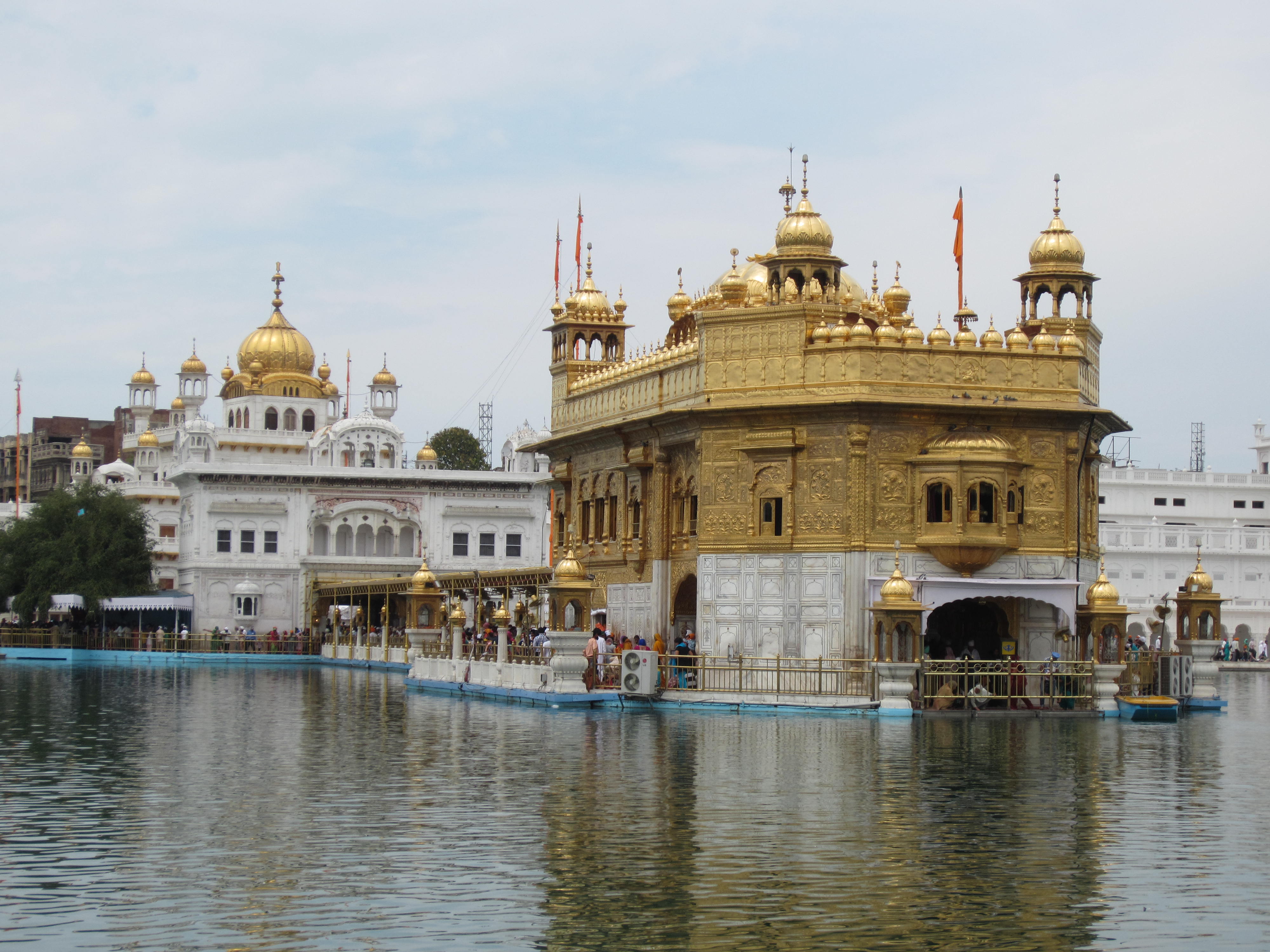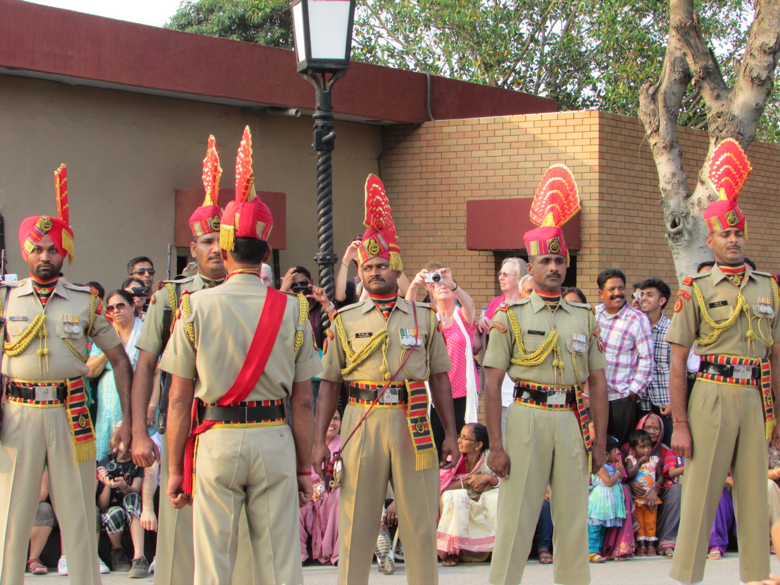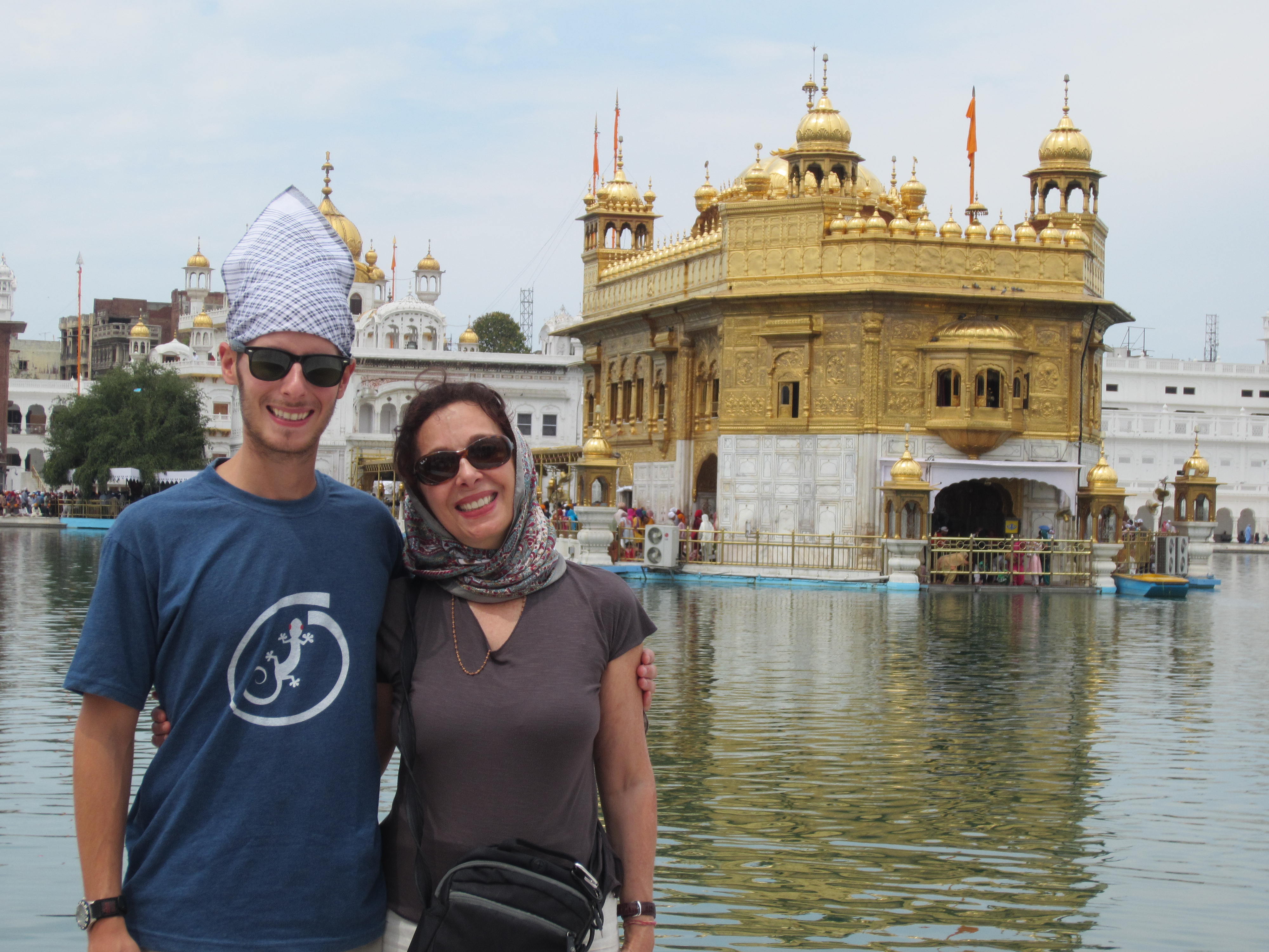 A few highlights from the past 10 days in India. We visited Chandigarh, which was India’s first planned city. We had never given much thought to a “planned city” as we have grown up in the US with planned cities at every turn. Chandigarh is an exception to the norm in India. Each district (nearly 30 in total) has shopping centers, dining options, hotels, street lights, medians and crosswalks and is essentially self-sufficient. It was nice to see some uniformity in such a frenzied country; however, with its uniformity came a lack of character and suburban feel. After Chandigarh, we headed west to Amritsar, the epicenter of Sikhism and home of the Golden Temple, the holiest site for the Sikh religion. Within the temple grounds we ate lunch at the temple cafeteria, which serves about 80,000 free meals per day! We filed into the cafeteria with a steel tray, bowl and cup in hand, sat on the floor with hundreds of other people (mostly pilgrims and locals) and were served by a ladle; dal, dessert, chapatti and vegetables. The food was surprisingly tasty and the atmosphere resembled a summer camp dining hall experience. The next day we took a taxi to the India-Pakistan border to watch a much hyped and orchestrated border crossing ceremony performed by the guards of the neighboring countries. This is a somewhat significant and unusual event since both the government and local population of India and Pakistan are not on the best of terms. This turmoil stems from prior military conflicts and recent terrorist attacks in India that were linked to Pakistani Muslims. Regardless, both countries have set up grandstands for the spectators, play music over loud speakers and the audience participates in call and response cheers. The border guards perform an impressive array for leg kicks, stomping and speed walking that would put Richard Simmons to shame. The finale involves the guards from both countries shaking hands and closing of the gates until the following morning. Additionally, this was the most positive energy siphoned into one place we have seen in India thus far, with women dancing in the streets and singing along to the music. This was also a very unusual sight since Indian women rarely display any signs of liberation in public, especially dance.